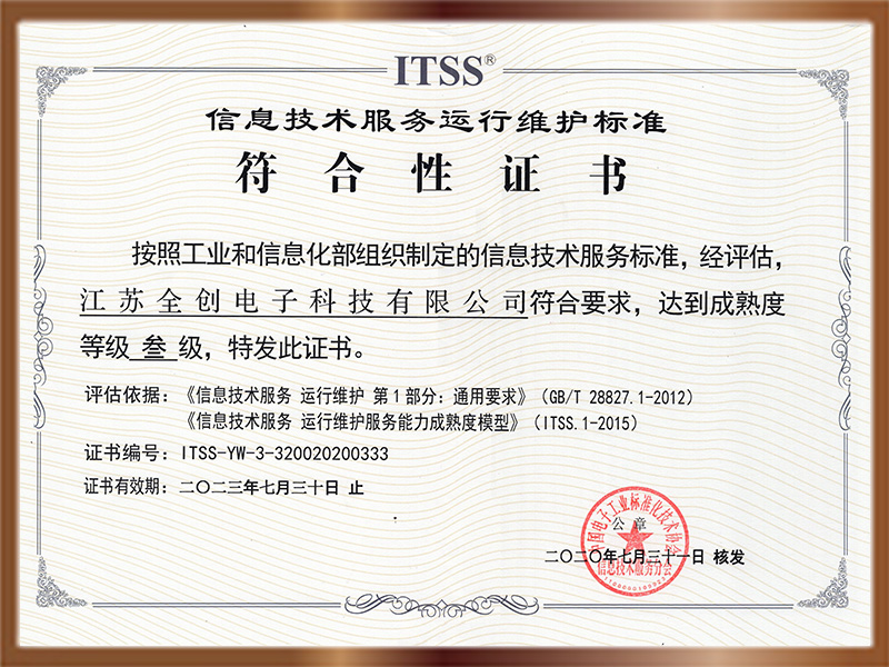 ITSS信息技術(shù)服務(wù)運(yùn)行維護(hù)標(biāo)準(zhǔn)符合性證書
